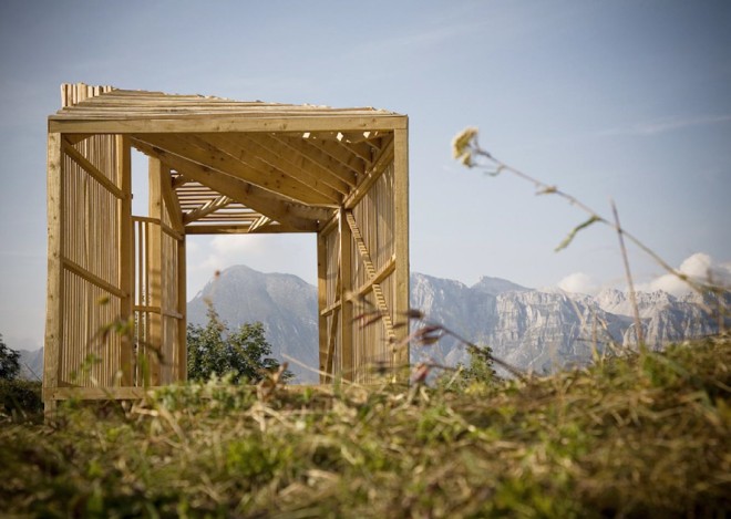 L’Osservatorio Panoramico è un’architettura temporanea, un padiglione in legno da cui contemplare la specificità del territorio del Friuli Venezia Giulia.